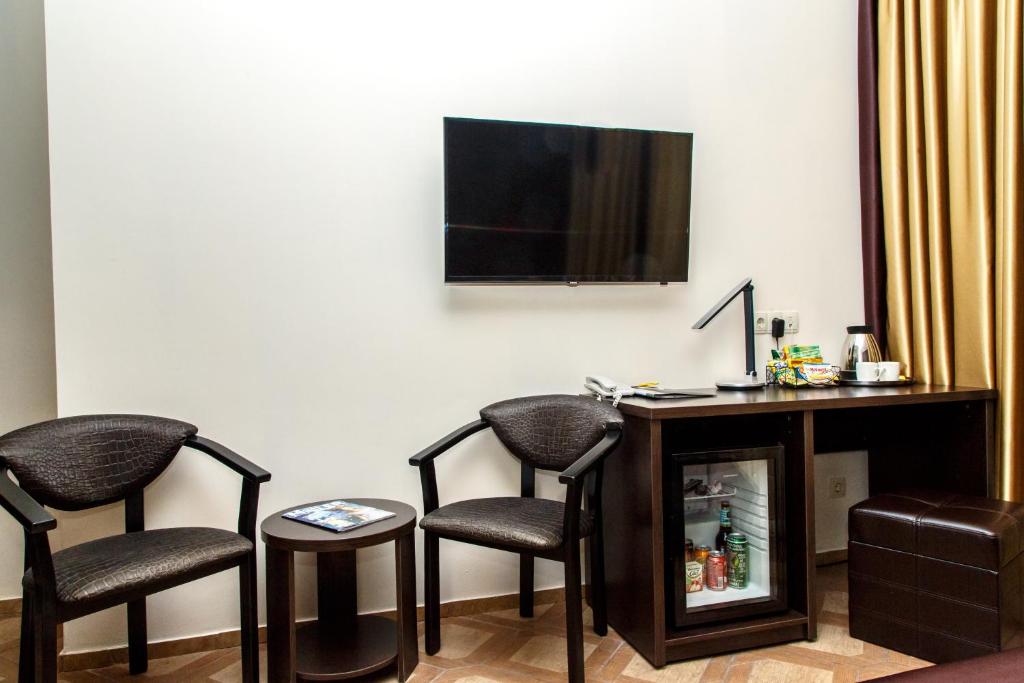 В «Полулюксах с балконом» 17 кв.м. Люкс с кафельным/мраморным полом, мини-баром и электрическим чайником.